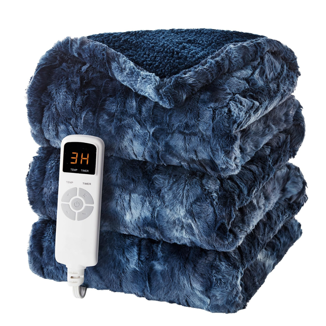 Faux Fur Sherpa Electric Heated Blanket with 9 Levels and Auto Off